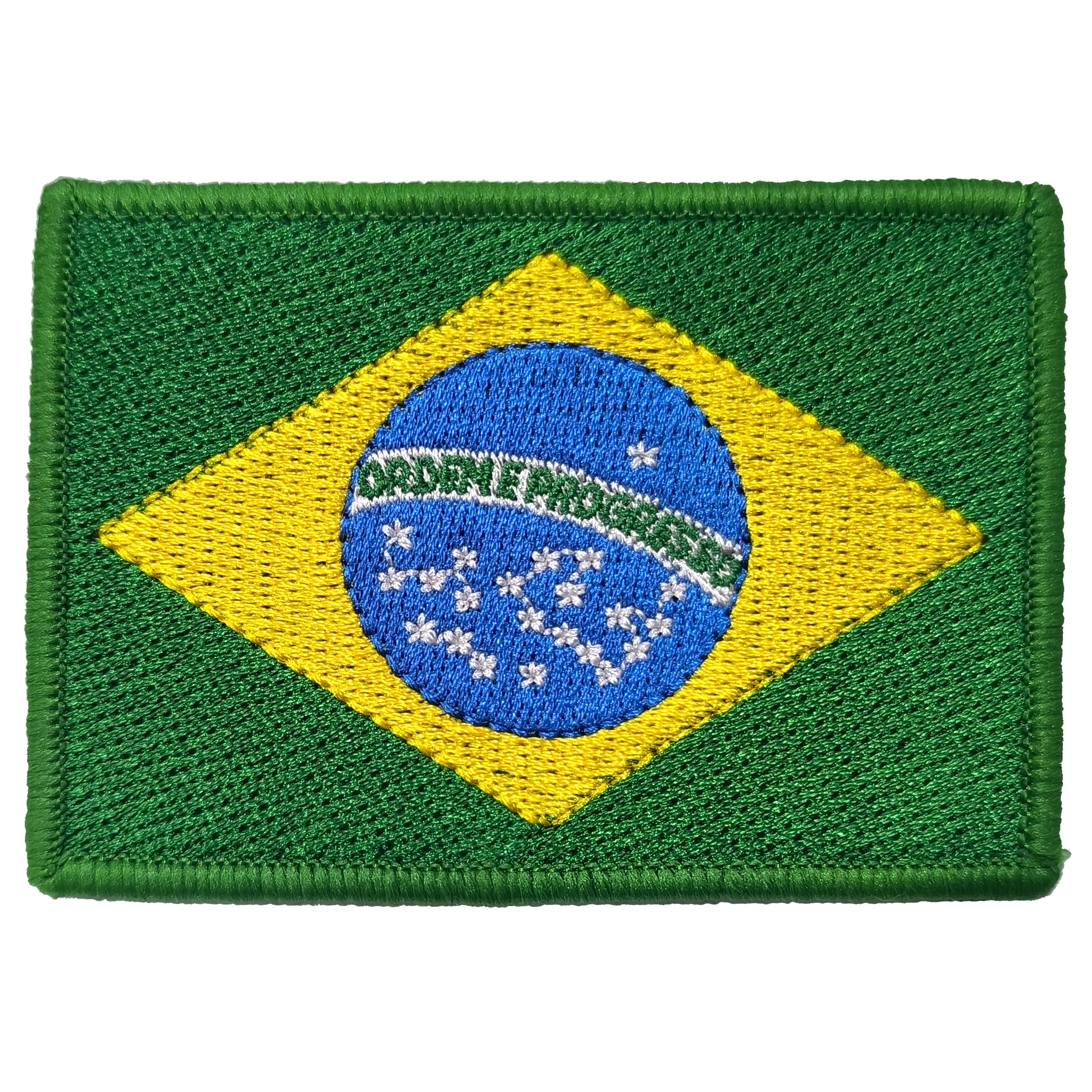 A bandeira bordada, 56 mm de altura por 80 mm de largura.