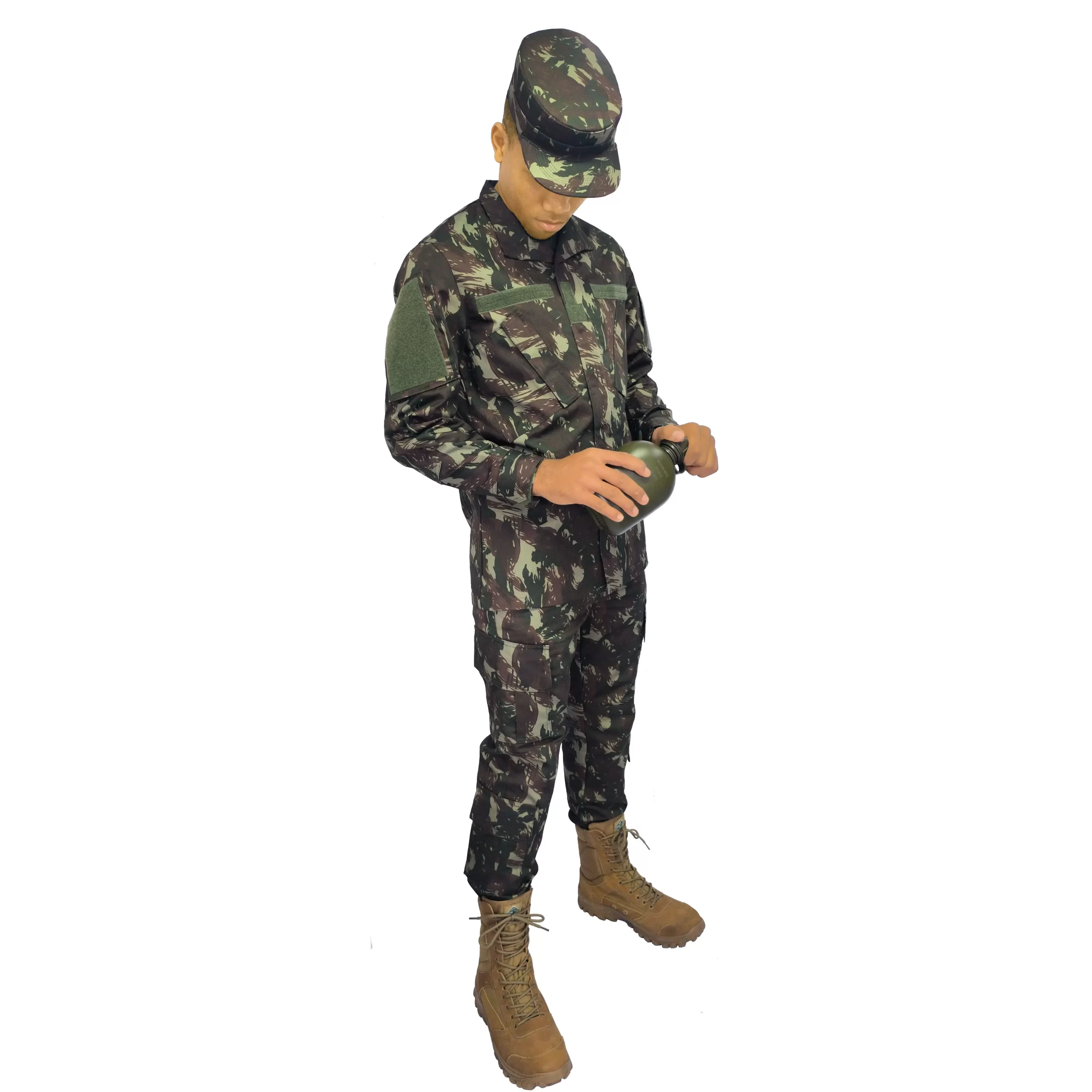 O conjunto de vestuário de combate do Exército Brasileiro, conforme as especificações do RUE (Regulamento de Uniformes do Exército), utiliza tecido de alta resistência. Isso assegura durabilidade e adaptação às condições desafiadoras que os militares enfrentam, proporcionando agilidade e segurança em diversos ambientes.
