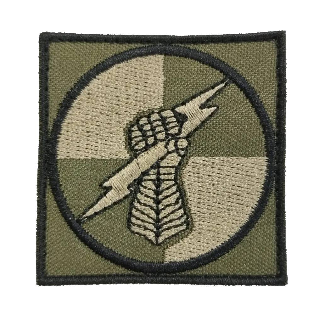 As insígnias, distintivos e sutaches bordados de baixa visibilidade são confeccionados em lona em nylon PVC (79% poliéster e 21% PVC) resinado, na cor verde-militar Pantone, bordados em linha preta Pantone Black C e linha verde-clara Pantone, sendo aplicados por meio de fecho de contato na cor verde-oliva.
