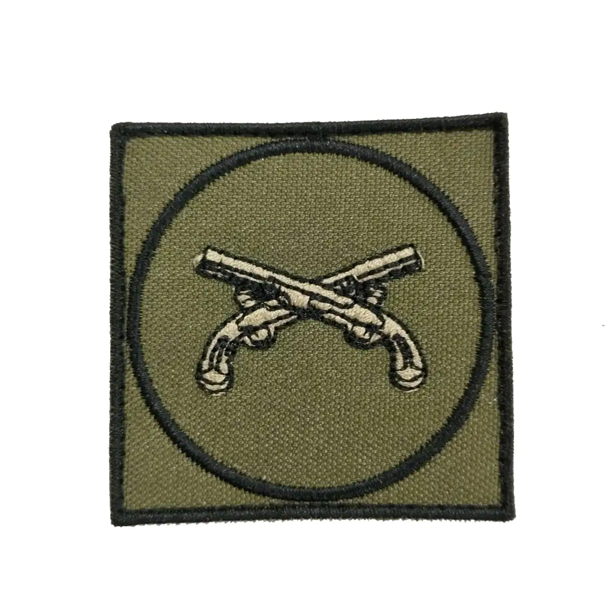 As insígnias, distintivos e sutaches bordados de baixa visibilidade são confeccionados em lona em nylon PVC (79% poliéster e 21% PVC) resinado, na cor verde-militar Pantone, bordados em linha preta Pantone Black C e linha verde-clara Pantone, sendo aplicados por meio de fecho de contato na cor verde-oliva.